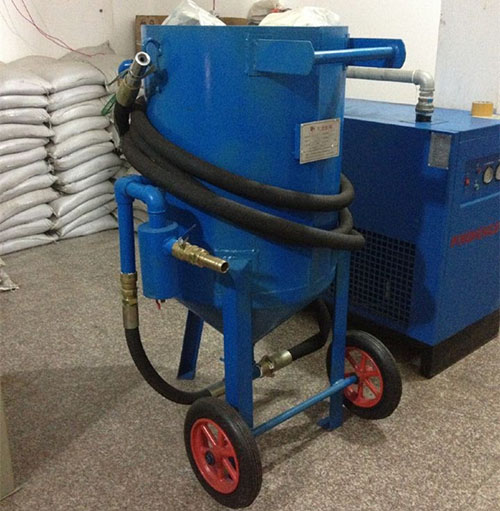 3.喷砂罐带有两个轮子,移动操作方便